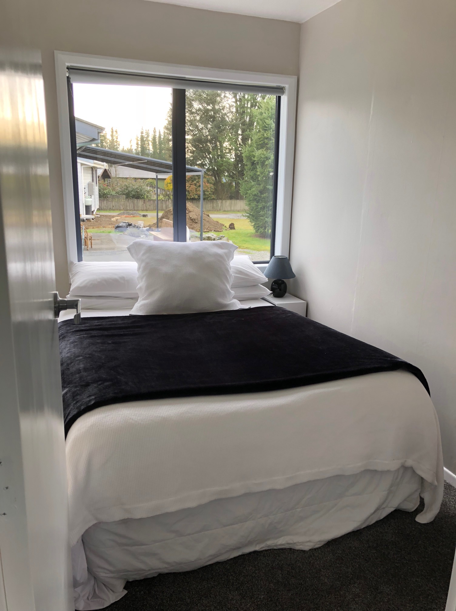Birch Cottage sleeps up to 7. It has 2 bedrooms one with a queen bed, one with a single and a sleep out.